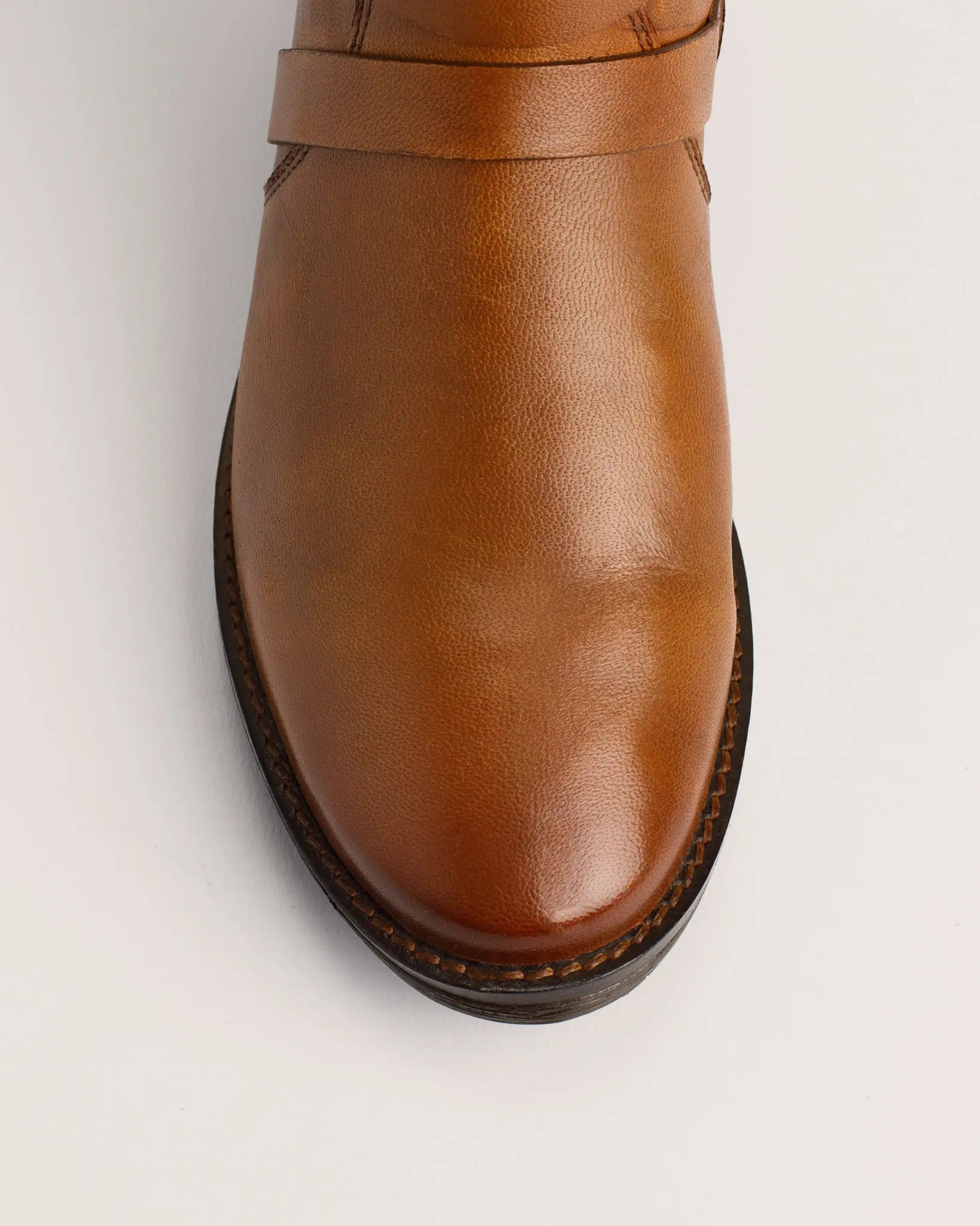 De Babila Laars in cognac is geïnspireerd op de klassieke rijlaars en combineert tijdloze elegantie met praktisch comfort. Uitgevoerd in hoogwaardig echt leer met een kniehoog model en verfijnde details bij de enkel. De zachte microvezel voering en het leder voetbed zorgen voor een comfortabele pasvorm, terwijl de lage 2,5 cm hak stabiliteit biedt voor dagelijks gebruik. Dankzij de binnenrits trek je de laars eenvoudig aan en uit. De stevige zool maakt de Babila niet alleen perfect voor herfst- en winterlooks, maar ook festivalproof.