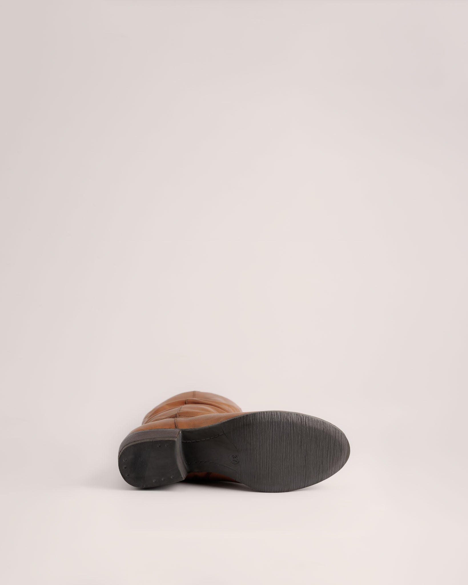 • Sloblaars tot halverwege de kuit, uitgevoerd in glad cognackleurig leder